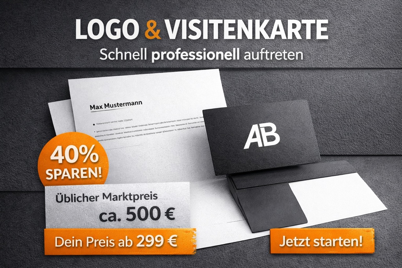 Mit dem Starter-Paket erhalten Sie alles, was Sie für einen professionellen Einstieg benötigen: ein individuelles Logo-Design sowie eine passende Visitenkarte im Corporate Design.